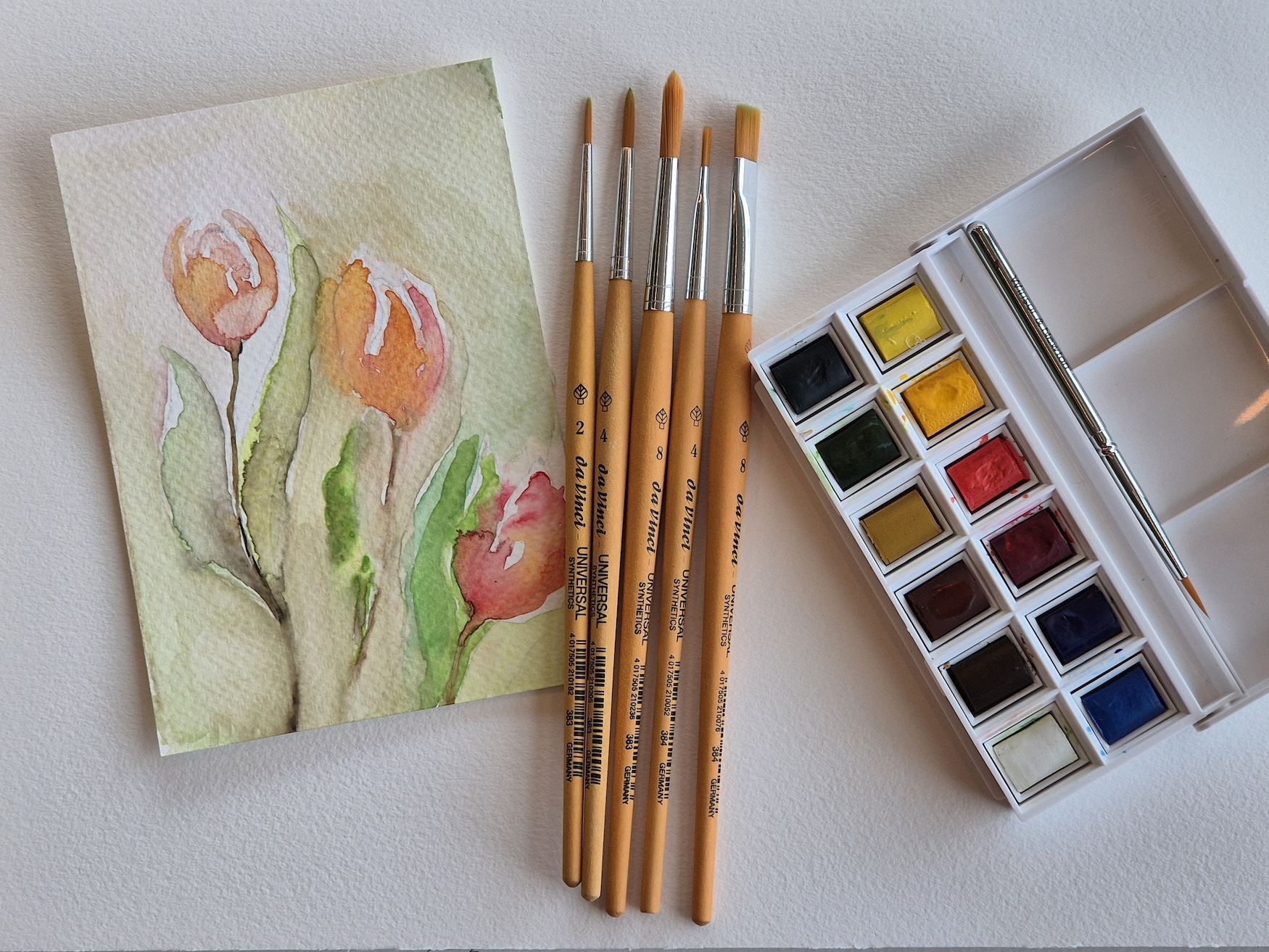 • 5 aquarel kwasten nr 2,4,8 met punt, nr 4 en 8 plat